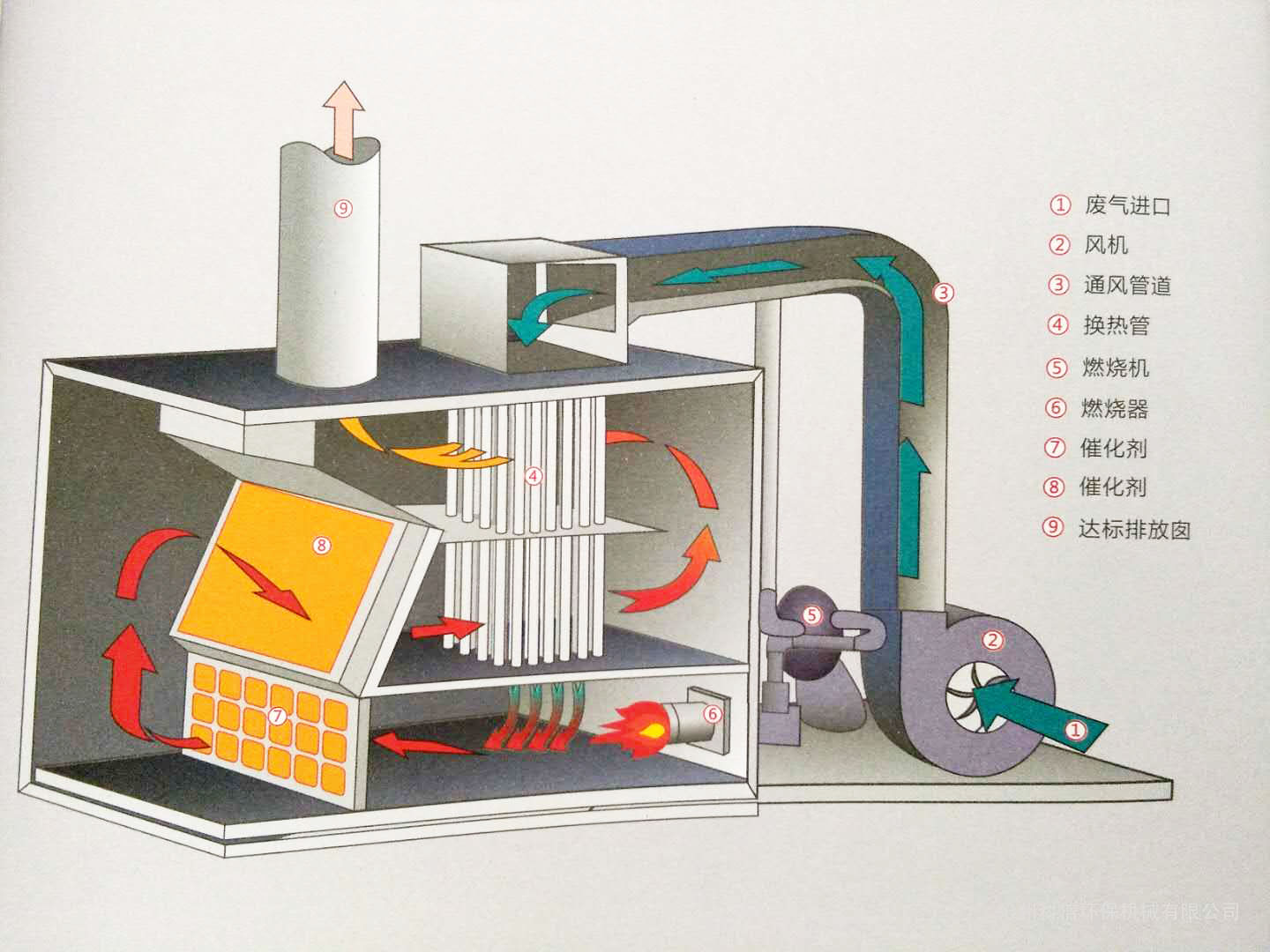 催化燃燒廢氣處理環保設備是有活性炭吸附濃縮+催化燃燒(CO)采用活性炭作為吸附劑,結合吸附凈化、脫附再生和催化燃燒原理,將大風量、低濃度的有機廢氣凈化后達標排放的一種高效治理技術。當活性炭吸附飽和后再利用熱風將有機廢氣從活性炭上脫附出來,使得活性炭得到再生;脫附出的有機廢氣被送往催化燃燒室(CO)進行催化氧化,有機物被高溫氧化成為無害的CO2和H2O;。催化燃燒之后的氣體通過換熱器加熱鮮風,熱交換后降溫的氣體部分通過煙囪排放,另一部分用于活性炭的脫附再生;從而達到余熱利用和節能的目的。整套裝置由干式過濾器、活性炭吸附/脫附塔、催化燃燒室、阻燃器、相關風機、閥門、電控系統等部分組成。