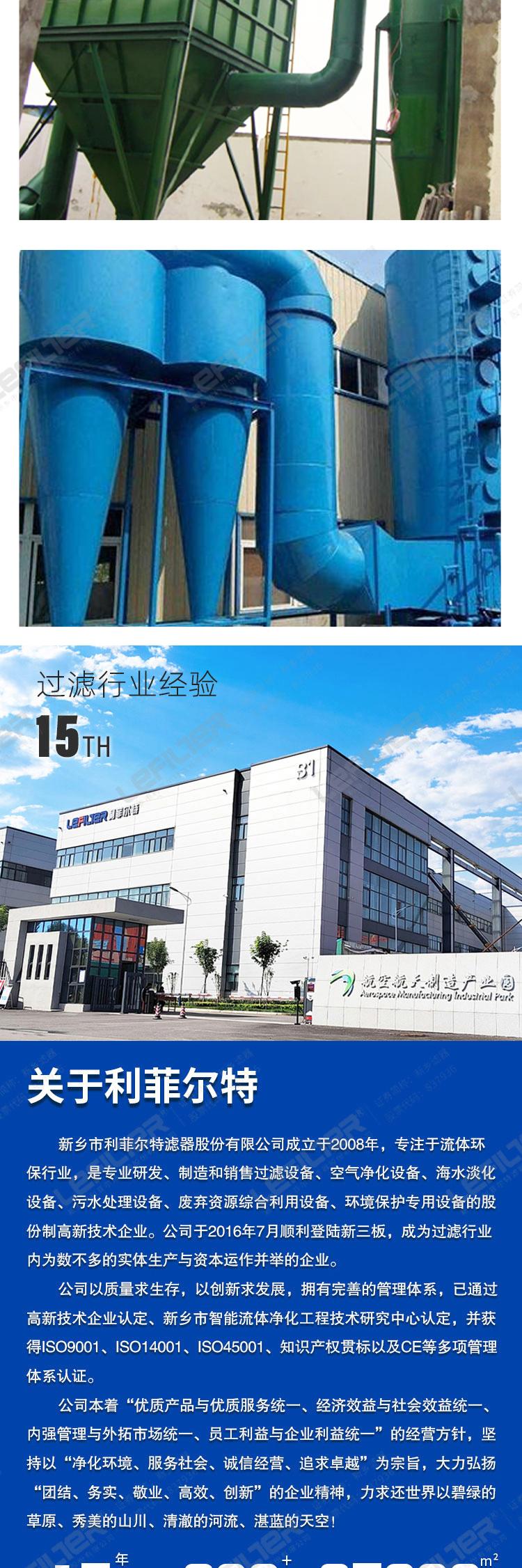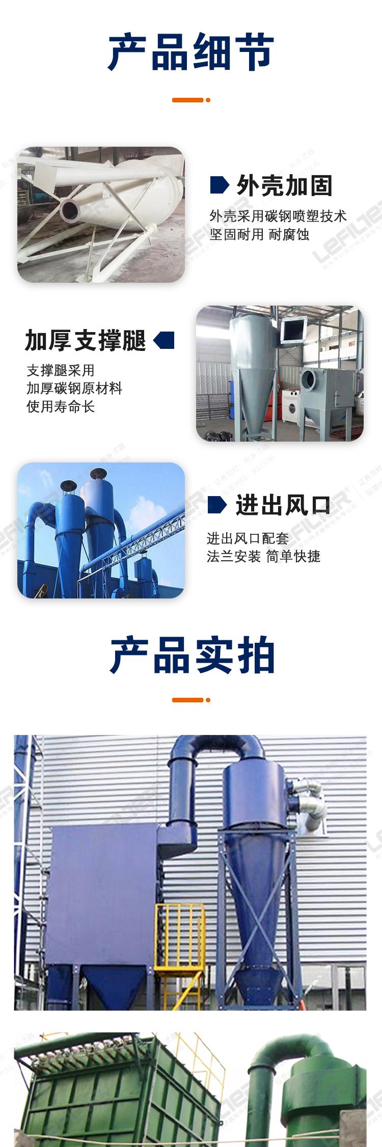 旋風除塵器根據(jù)結構的不同分為多管旋風除塵器(多個小型除塵器在一個殼體內并聯(lián)使用)、旁路式旋風除塵器(設有旁路分離室,利用上漩渦分離塵粒)和擴散式旋風除塵器(呈倒錐體形狀,并裝有反射屏在椎體底部)。